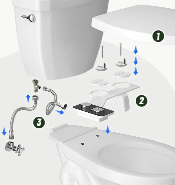 • Conception non électrique : le dispositif de bidet JUST WADY posséde une conception non électrique, assurant une installation et une utilisation faciles sans besoin de prise électriques
